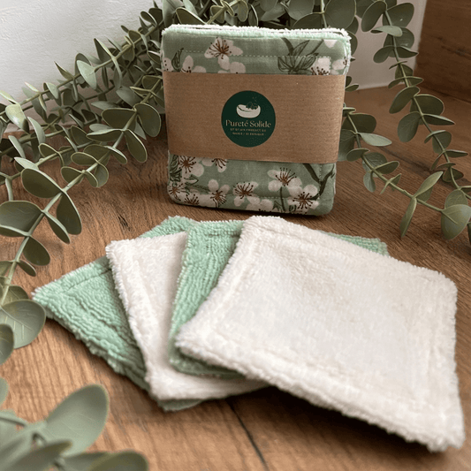 Lot de 4 Lingettes Démaquillantes Réutilisables en Tissus Bambou, Coton | Faites Main | Pureté Solide